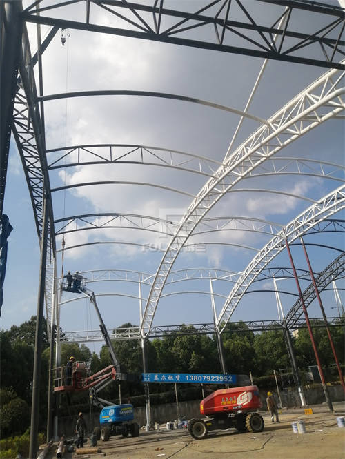 該項(xiàng)目坐落于九江濂溪區(qū)全民健身中心,占地面積約2400平方米,我司從今年5月上旬開始拆除圍網(wǎng),并對(duì)球場(chǎng)進(jìn)行了基礎(chǔ)的挖深工作。7月底,佛蘭空間膜結(jié)構(gòu)有限公司工程項(xiàng)目團(tuán)隊(duì)人員不分晝夜,完成了鋼構(gòu)拼接、鋼構(gòu)吊裝、鋼構(gòu)除銹、膜材吊裝、膜材安裝等一系列操作,歷時(shí)一月余,九江白鹿網(wǎng)球場(chǎng)完美竣工。