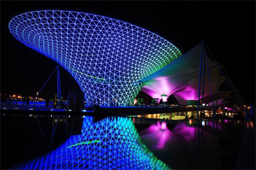 膜結(jié)構(gòu)建筑,以其現(xiàn)代、飄逸的特點(diǎn)越來越受廣大民眾的認(rèn)可,除了造型獨(dú)特,美觀耐用,膜材特有的透光性也使膜結(jié)構(gòu)建筑夜景美輪美奐。