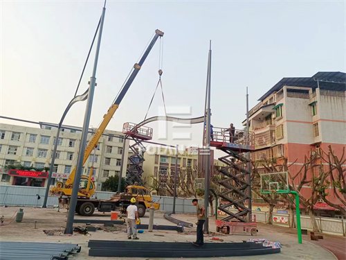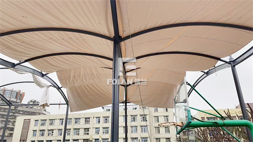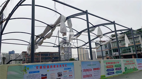 該學(xué)校風(fēng)雨操場位于四川省內(nèi)江市,佛蘭空間負(fù)責(zé)該球場鋼結(jié)構(gòu)的制作、加工、安裝和膜材的制作、加工、安裝。項(xiàng)目人員進(jìn)場后,辛苦施工,不足月余,該項(xiàng)目順利竣工。