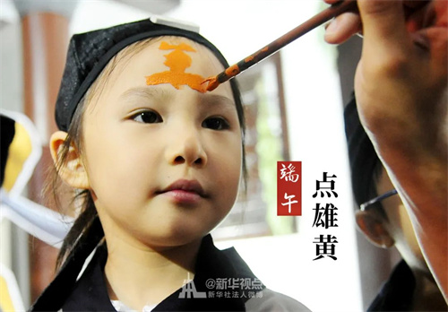 端午節(jié)這一天,古人有飲雄黃酒的習(xí)俗,古語曰“飲了雄黃酒,病魔都遠(yuǎn)走?!比欢瑥默F(xiàn)代科學(xué)的角度看,喝雄黃酒有損人的身體健康,危險(xiǎn)性很大。許多地方有用雄黃酒在孩子額頭上書寫“王”字的習(xí)俗,這也表現(xiàn)出人們對虎的崇拜,一借雄黃以驅(qū)毒,二借猛虎以鎮(zhèn)邪,三則表達(dá)對孩子的祝福。