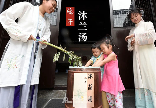 《大戴禮記》中說:“五月五日,蓄蘭為沐浴。”當(dāng)時(shí)的蘭不是現(xiàn)在的蘭花,而是菊科的佩蘭,有香氣,可煎水沐浴。時(shí)至今日,在我國廣東、湖南、廣西等地,人們用艾、蒲、鳳仙、桃葉等煮成藥水洗浴,據(jù)說可以治皮膚病,去邪氣。