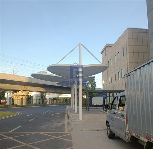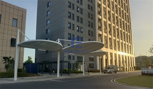 為養(yǎng)護集團大巴車,也為給員工提供一個可遮陽擋雨的上下車場地,深圳北行車公寓興建了一個膜結構停車棚。