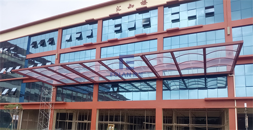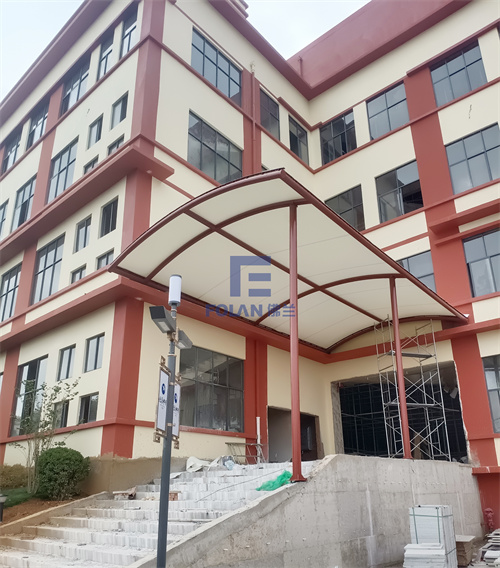除了音體館門頭,該校報(bào)告廳2側(cè)及會堂后側(cè)出口也建造了膜結(jié)構(gòu)門頭。