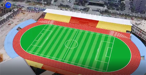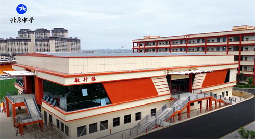 陸良北辰中學(xué)新校區(qū)體育看臺,面積約2000平方米,骨架膜結(jié)構(gòu),采用竹節(jié)拱和吊帽造型相結(jié)合,帽子頂部設(shè)有紅色圓環(huán)作為裝飾,和校園主題色形成呼應(yīng)。