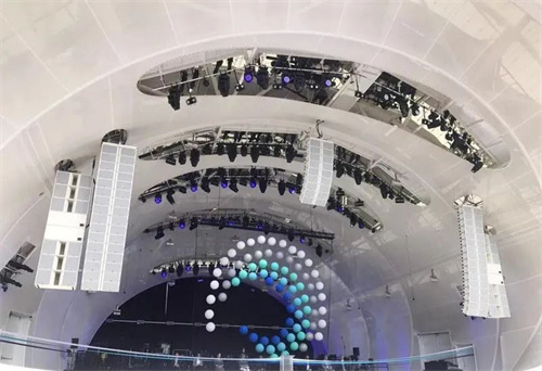 由于采用了張拉膜結構外殼,舞臺的外觀還可以隨著正在演出的音樂隨心變換,承擔著投影屏幕的雙重角色。燈光映射在張拉膜結構“貝殼”上,為觀眾帶了極美的視覺盛宴,也將現(xiàn)場的氛圍襯托到了極致。