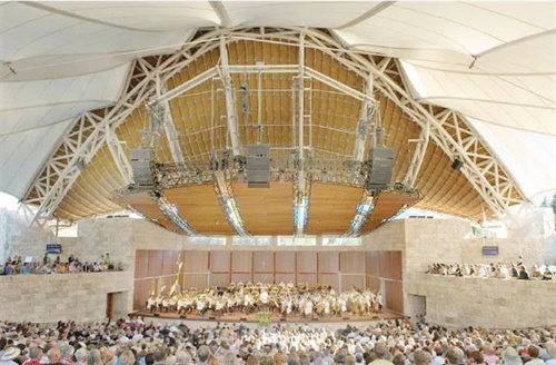 與傳統(tǒng)的音樂會場地不同,坐落于美國西海岸的雷迪貝殼音樂劇場在建筑和聲學設計上實現(xiàn)了高度創(chuàng)新。戶外舞臺外表形似貝殼,一律以白色的張拉膜結構所鋪蓋,遠遠望去整個舞臺宛如白帆競發(fā),巍然屹立,典雅靜謐。