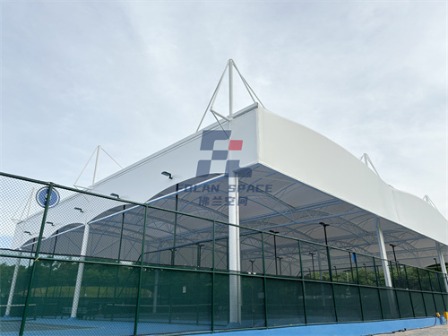 6月,佛蘭空間在深圳大運中心新竣工了一座膜結構網球場,該膜結構可覆蓋三片網球場地,投影面積達2500㎡,采用PVDF膜材,高穹頂設計與流線,四周增加立面膜材,可防西曬和掃雨,給網球愛好者擁有風雨無阻的打球體驗。