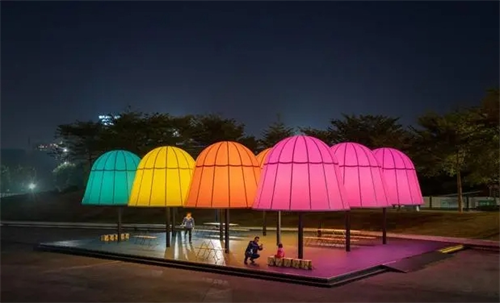 佛蘭空間項(xiàng)目——小區(qū)膜結(jié)構(gòu)車棚,燈光變幻