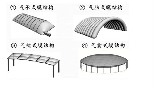 充氣膜結(jié)構(gòu)是指在以高分子材料制成的薄膜制品中充入空氣后形成的結(jié)構(gòu),充氣膜結(jié)構(gòu)所構(gòu)成的建筑又分為兩大類:一種為氣承式膜結(jié)構(gòu),這種結(jié)構(gòu)常見于工業(yè)領(lǐng)域;另一種則為氣脹式膜結(jié)構(gòu)(氣肋式、氣枕式、氣囊式)更適于應(yīng)用在公共建筑中。