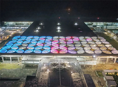 ▲14314平方米的屋頂,包括84個雙層氣枕,頂層有63%的印點圖案,能減少陽光的穿透,為乘客提供下雨等天氣的保護。