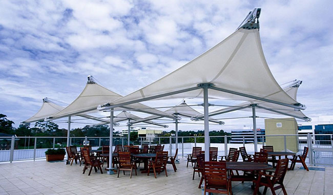 張拉式膜結構:由膜材料,鋼纜和支柱組成,通過使用電纜和支柱將張力引入膜材料中以實現穩(wěn)定性。