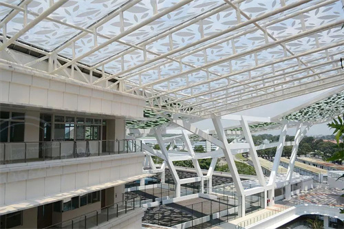 該設計旨在讓大量自然光進入深中庭,確保地面廣場空間明亮通風。在上層露臺層,建筑設計需要一個充滿植物和植被的采光露臺,為學生和教職員工提供一個內部花園空間。ETFE出色的透光率和對紫外線的透明度非常適合這個方案。