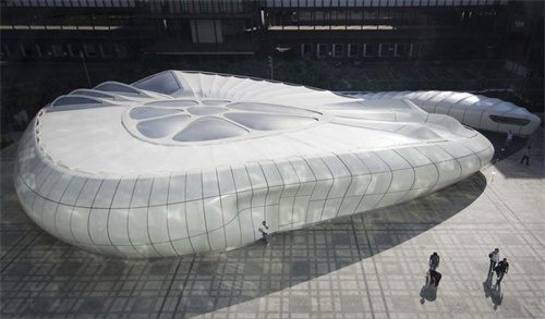 展覽館有機體的外形由一系列輕質曲面組件構成。