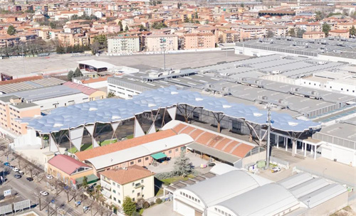 Veronafiere展覽中心決定更新展覽場地南側的“ReTeodorico”入口廣場。VectorFoiltec在17米高的鋼柱上安裝了380塊,面積達6654平方米的兩層ETFE系統(tǒng)。