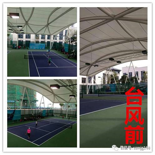 這是佛蘭空間膜結(jié)構(gòu)于2016年在珠海建的一個網(wǎng)球場膜結(jié)構(gòu),項目采用單管弧梁,最大跨度達40米,膜設(shè)計使用年限25年,采用法國法拉利PVDF膜材,所有施工圖紙在施工前都通過了專家圖審,認真的態(tài)度、嚴謹?shù)谋O(jiān)管和頂級的材料,讓這座膜結(jié)構(gòu)球場經(jīng)受住了2017年天鴿和帕卡的襲擊。