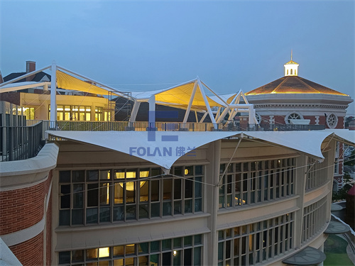 ▲佛蘭空間項目:廈門幼兒園扇形中庭膜結(jié)構(gòu)工程(PTFE膜材)
