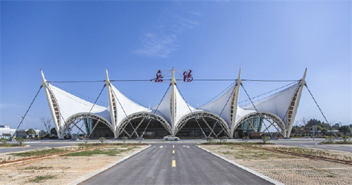 航站樓創(chuàng)新性地采用PTFE拉膜結(jié)構(gòu)體系創(chuàng)造出具有獨一無二的現(xiàn)代航空港造型,鋼結(jié)構(gòu)梭柱與白色拉膜的組合將岳陽的傳統(tǒng)景點——瀟湘八景之一:“遠(yuǎn)浦歸帆”的意境以現(xiàn)代的方式重新演繹,體現(xiàn)濃郁的現(xiàn)代氣息的同時又延續(xù)了傳統(tǒng)地域文化。