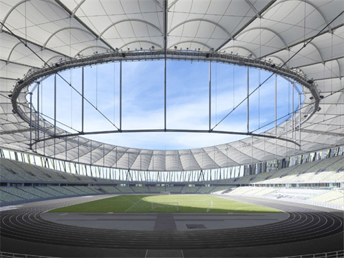 體育場(chǎng)館一般都是大跨度空間,風(fēng)吹、雨水都能讓建筑大規(guī)模受力,這就要求膜材的強(qiáng)度夠高,抗撕裂性能好,要不然建成的膜結(jié)構(gòu)建筑很容易在外力作用下變形甚至是撕裂。而PTFE膜材,最大的特點(diǎn)就是強(qiáng)度高,能滿足大跨度空間的受力要求,此外它還防水阻燃,是所有建筑膜材中安全性能最高的膜材。