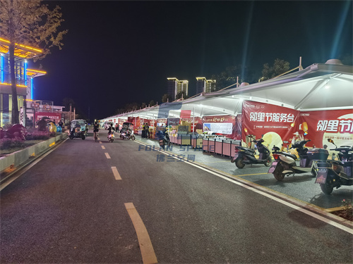 膜結(jié)構(gòu)可以作為一個臨時或永久的慶典場地,為五一期間的各類活動提供獨特而美觀的空間。不論是商業(yè)活動、婚禮慶典,還是文化展覽,膜結(jié)構(gòu)都能憑借其優(yōu)美的造型和出色的功能性,為活動增添亮點。