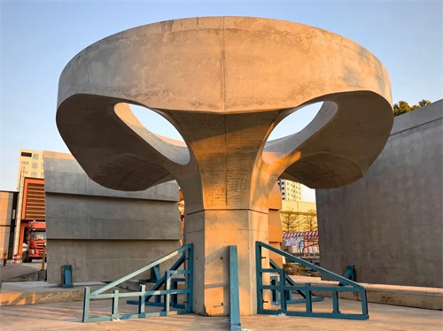 從空氣負(fù)形到蘑菇混凝土實(shí)體,該建筑模板由多組異形充氣氣囊構(gòu)成,通過(guò)精準(zhǔn)控制氣囊的負(fù)空間造型,使?jié)仓尚偷幕炷帘砻娉尸F(xiàn)出巴洛克建筑”剖碎空間”般的流動(dòng)肌理。這種創(chuàng)新工藝重新詮釋了建筑實(shí)體與過(guò)渡空間的關(guān)系,將動(dòng)態(tài)力量可視化于凝固的混凝土形態(tài)之中。