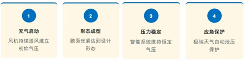 膜材張力:氣壓使膜面均勻受拉形成剛度