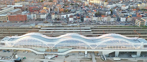 巨大的透明外墻排列在火車站建筑的外部,可讓大量的自然光線進入覆蓋火車軌道的大廳。4米跨度的網(wǎng)格容納了超輕的ETFE氣枕。氣枕的弧形表面完美地符合了“波浪”的設(shè)計意圖。此外,屋頂還安裝了定制形狀的ETFE氣枕,通勤者在享受充足陽光的同時,還能躲避狂風(fēng)暴雨。