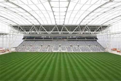 美國銀行體育場使用了240,000平方英尺的透明ETFE屋頂,這是美國最大的屋頂。在這個體育場中,ETFE發(fā)揮了許多優(yōu)勢,它的透明性使建筑內的視野更清晰,還支持運動員們沐浴在自然光線下比賽。另外,該ETFE膜結構可伸縮屋頂可在幾分鐘內打開,為觀眾帶來全新的體驗。
