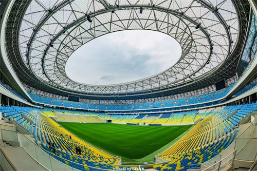 該體育場外觀采用的ETFE氣枕超10萬平米,是目前世界上僅次于北京水立方膜結構面積的大型單體建筑。