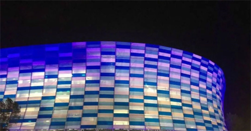體育場ETFE立面的弧形外觀極為輕巧,融合了前哥倫布時期的設計元素和馬賽克特征。它由124個垂直段組成,高度約40米。在這三個陰影中,共有5952塊ETFE薄膜。在白天,藍色和白色以及透明部分的球桿顏色清晰可見。到了晚上,ETFE立面會被LED燈以各種顏色照亮,熠熠生輝。