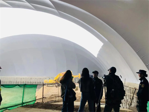 為了最大限度地為人民群眾創(chuàng)造干凈、安靜的宜居環(huán)境。在項(xiàng)目施工入場(chǎng)前,西城區(qū)住建委、西城區(qū)生態(tài)環(huán)境局等相關(guān)部門(mén)多次聯(lián)合廣外街道深入企業(yè)內(nèi)部,采取“實(shí)地走訪+座談交流+現(xiàn)場(chǎng)宣講”等方式,傾聽(tīng)并解答企業(yè)在施工揚(yáng)塵、噪聲污染防治等方面的問(wèn)題,并面對(duì)面宣講生態(tài)環(huán)境法律法規(guī)及相關(guān)政策,提出可行性、合理化建議,助力企業(yè)綠色施工。最終,在多方的集思廣益下,該工程基坑土方施工階段,大跨度、智能化、創(chuàng)新性的“基坑氣膜”技術(shù)統(tǒng)應(yīng)運(yùn)而生。