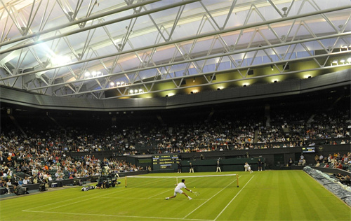 ▲屋頂關(guān)閉和照明燈可保證溫網(wǎng)比賽在天黑后繼續(xù)進行_AELTC