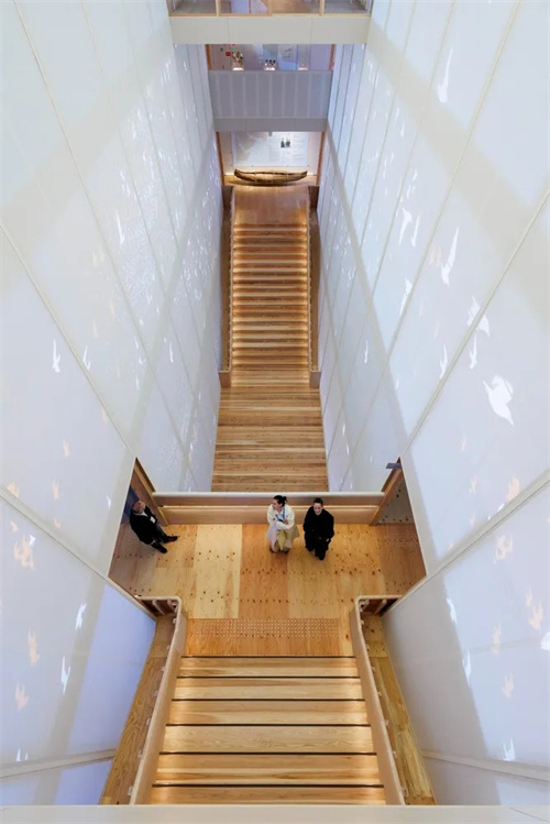 中庭頂部天窗與立面開口形成空氣對流路徑,結(jié)合木結(jié)構(gòu)的通透性,實(shí)現(xiàn)被動式降溫,降低能源消耗。